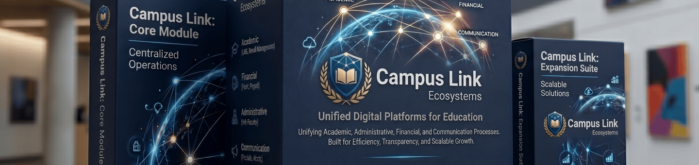 CAMPUS Link Ecosystem is an integrated suite of digital platforms designed to transform how educational institutions operate. It provides scalable, centralized solutions for both universities and schools, unifying academic, administrative, financial, and communication processes into one connected system. Built for efficiency, transparency, and real-time data access, the ecosystem empowers institutions to streamline operations, improve coordination, and make smarter, data-driven decisions at every level.